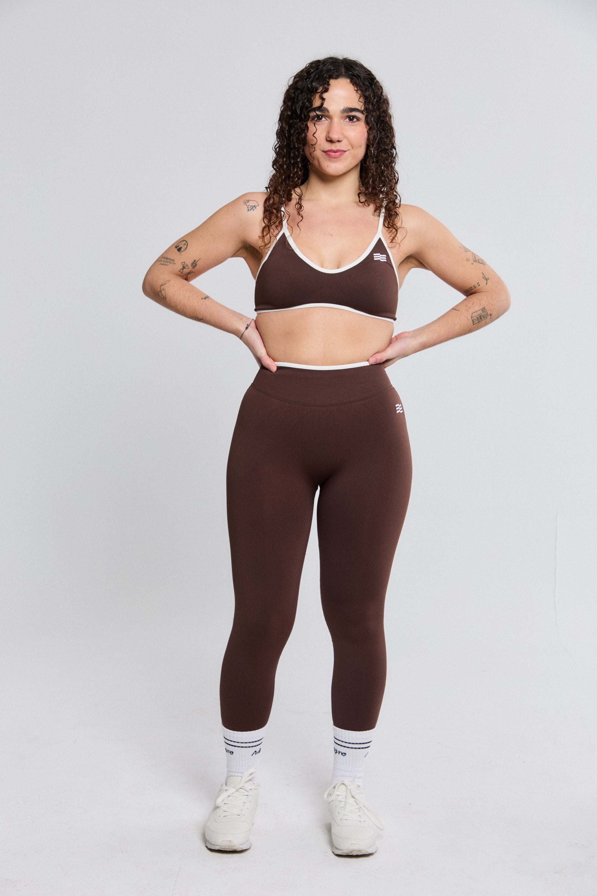 El Top Bicolor de Admyre destaca por su diseño moderno y limpio, donde el color principal se realza con líneas blancas que estilizan y aportan un contraste elegante. Su construcción seamless envuelve el cuerpo con suavidad, ofreciendo un soporte cómodo y uniforme sin roces.